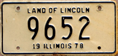 series plate, 1978 Illinois motorcycle plate, 2024 South Dakota small trailer plate.
