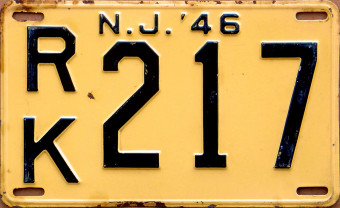 2001 Alabama handicapped plate; 2026 Florida passenger car plate; 1946 New Jersey passenger car plate, 2004 North Carolina passenger car