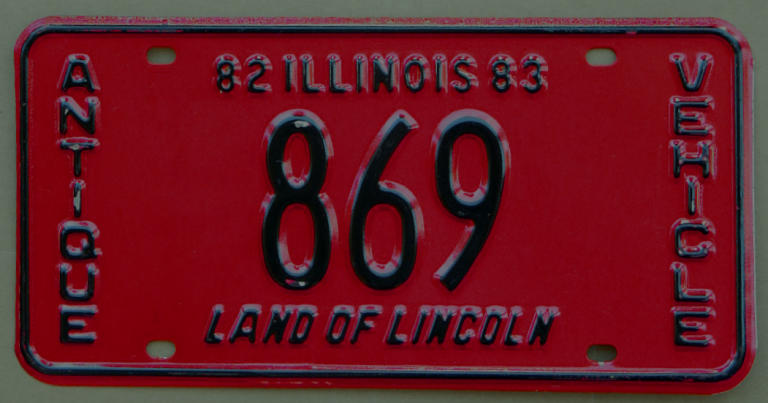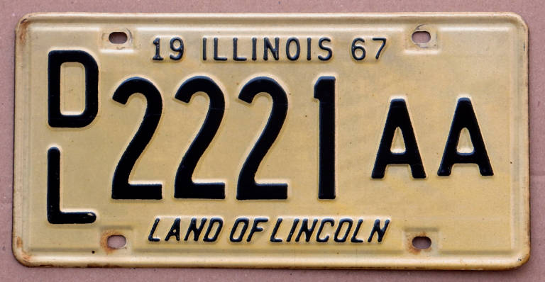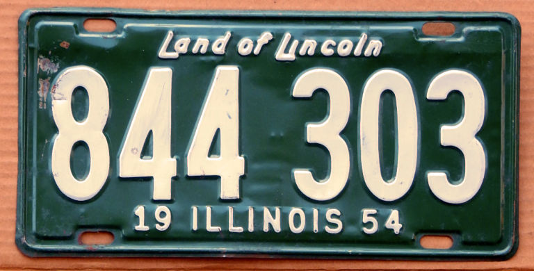 This is a real license plate; Illinois plates were made of fiberboard from 1943 to 1948. Plate dimensions are 11-7/16" by 5-1/2". |