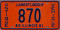 Two extra drilled bolt holes at top left. Background paint is badly discolored; it should be light gray. Registration card included, but the info is quite faded and hard to read. Oversized plate; dimensions are 13-1/2" by 4-1/2". |
