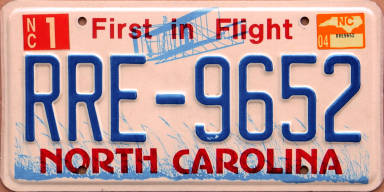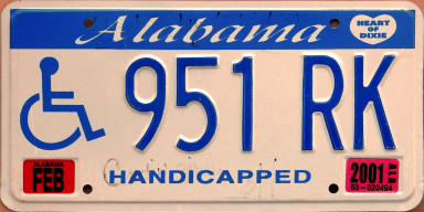 2001 Alabama handicapped plate; 2026 Florida passenger car plate; 1946 New Jersey passenger car plate, 2004 North Carolina passenger car