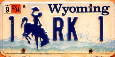 plate; 1994 Wyoming vanity plate "1 RK 1".
