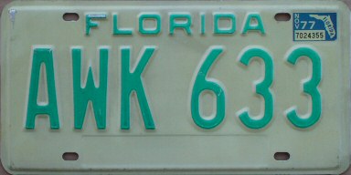 1977 was a transition year for Florida license plates. A new green-on-white plate began being issued to